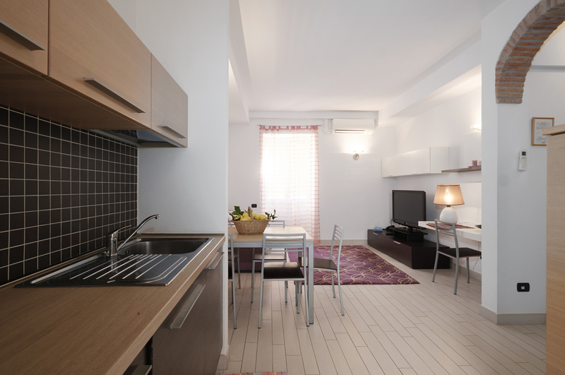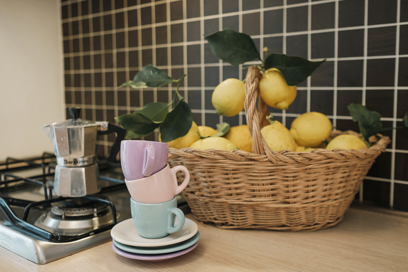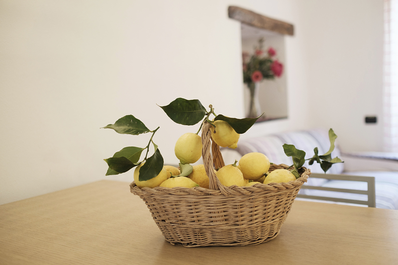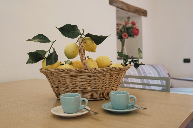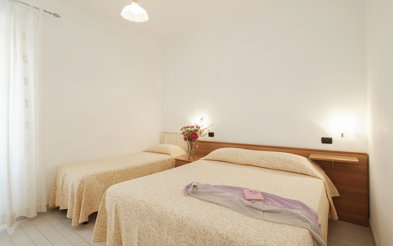 The Apartment Glicine’s colors are purple and lillac and it is located in the first floor it has kitchen-liviongroom, bathroom with a hydro massage shower unit, two bedrooms, one with doublebed and the other one with double bed + a single bed. The kitchen is fully equipped with a fridge, freezer, oven, 5 burners and a dishwasher.